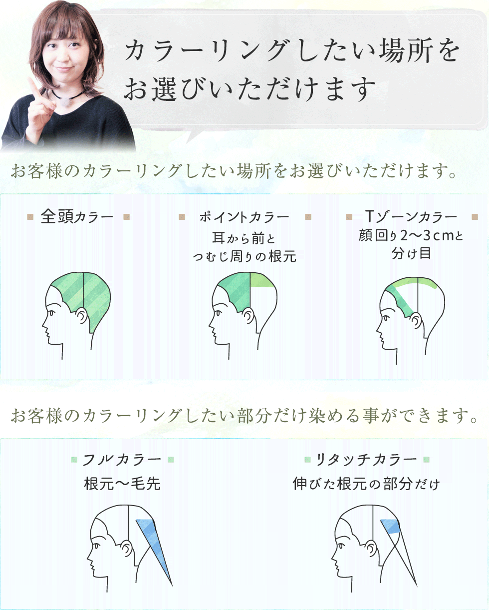 しかしどうしても根元が気になり頻繁に染めたい方は早めにTゾーンカラーやポイントカラーで気になる部分だけを染めるのもオススメです。
