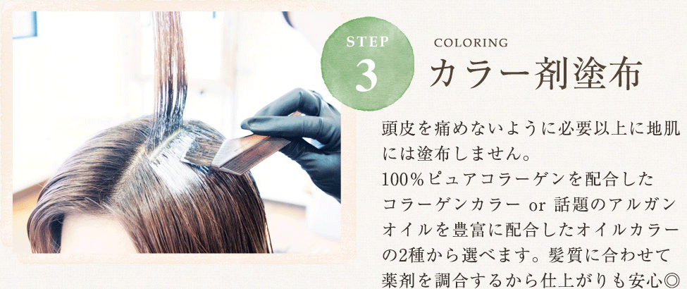またお客様一人一人の根本~毛先の状況に合わせてカラー剤を伊郷氏、『塗り分け』・『作り分け』ができるので髪へのダメージも最小限に抑える事ができます。